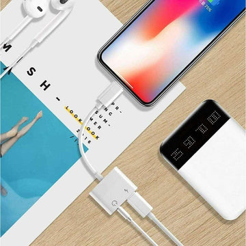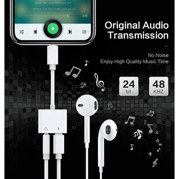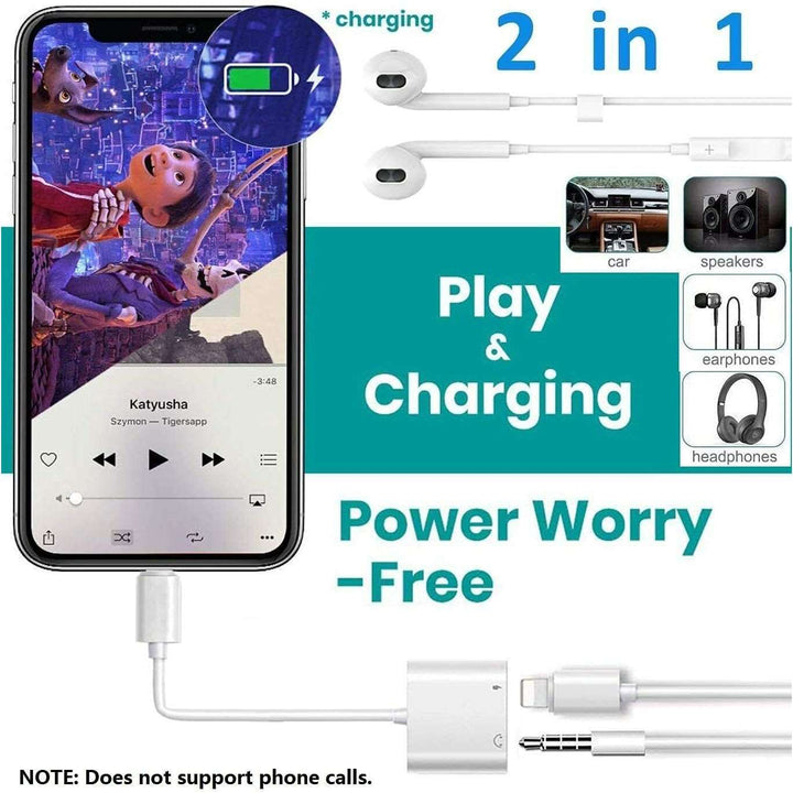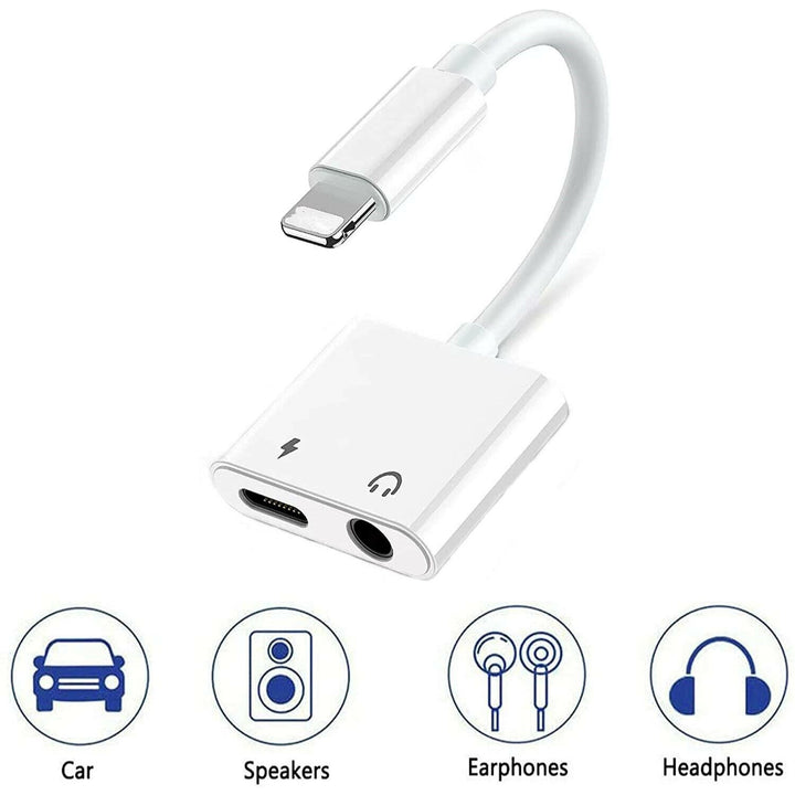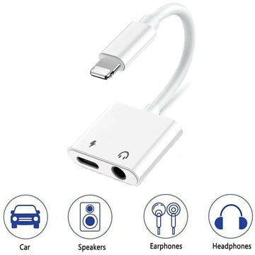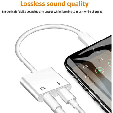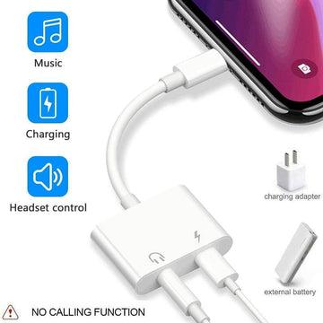 Dual Adapter 3.5mm Headphone & Charger For Apple iPhone Lightning