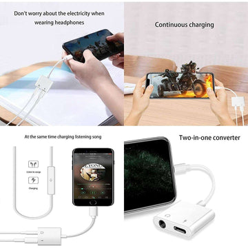 • [Multi Function] The 2 in 1 8pin to 3.5mm Headphone Audio & Charger adapter cable supports listen to music and charge your phone at the same time. Support Charging, Headset Control, Data Transfer, and Remote.