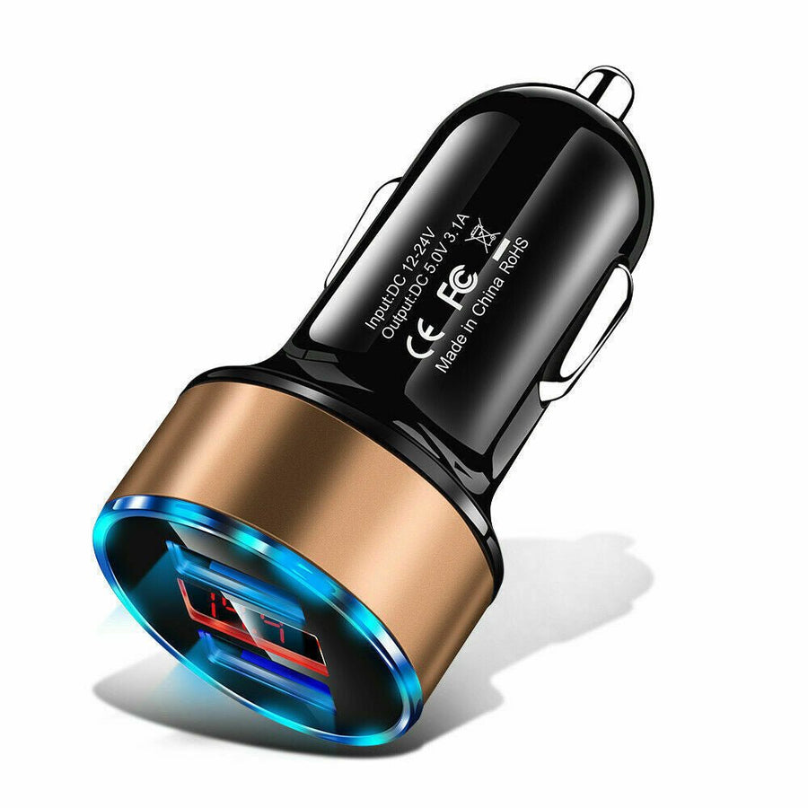 2-Ports USB Car Charger Cigarette-lighter Port LED Indicator Fast Charging