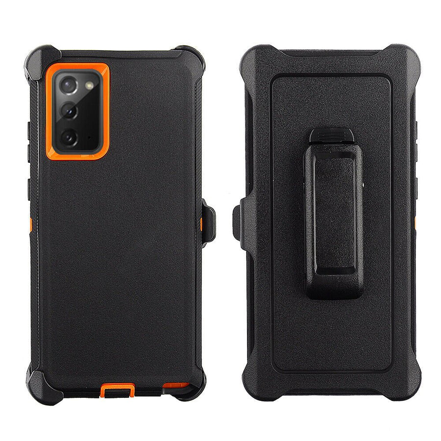 Heavy Duty Defender Galaxy Note 20 Belt Clip Holster Case - Black/Orange