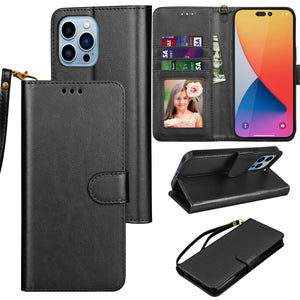 iPhone 14 Pro Leather Wallet Case with Card Holder - Black