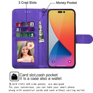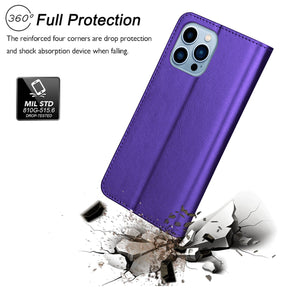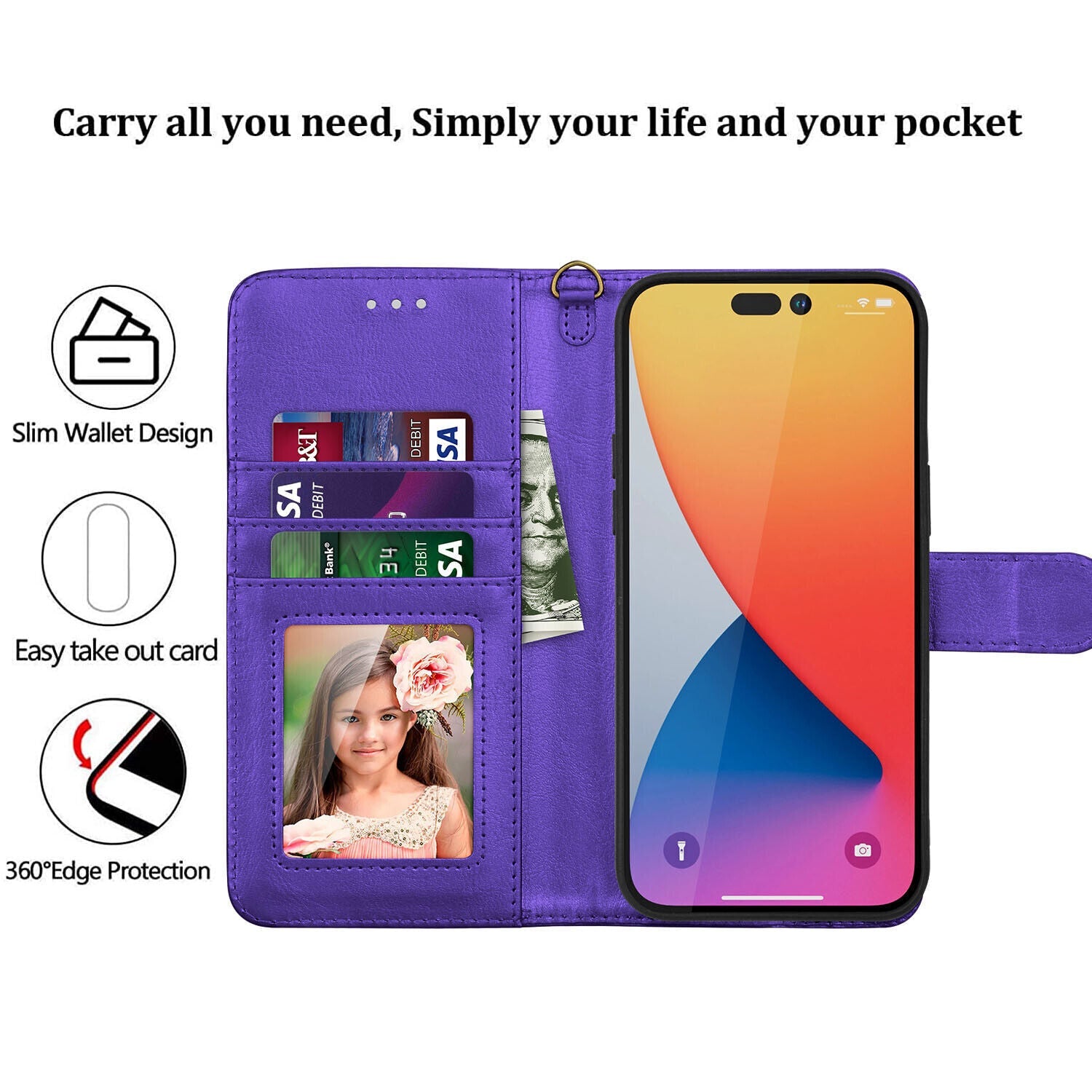 iPhone 14 Leather Wallet Case with Card Holder - Purple