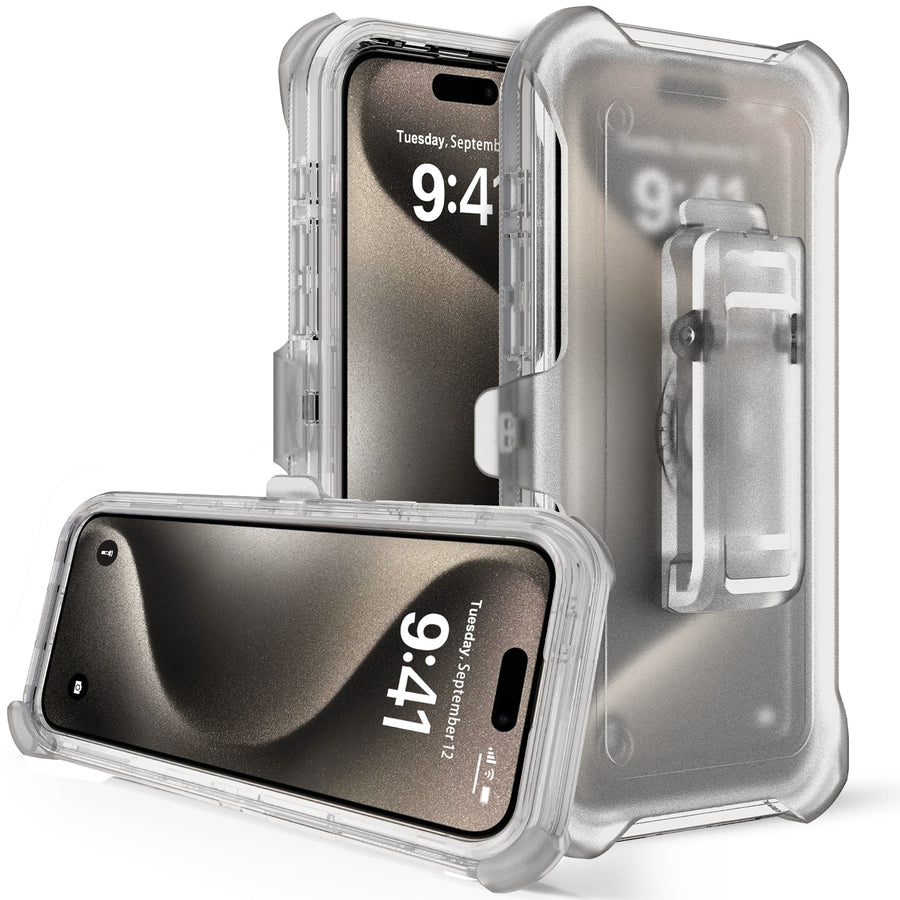 iPhone 15 Case Heavy Duty Defender Belt Clip Holster - Clear