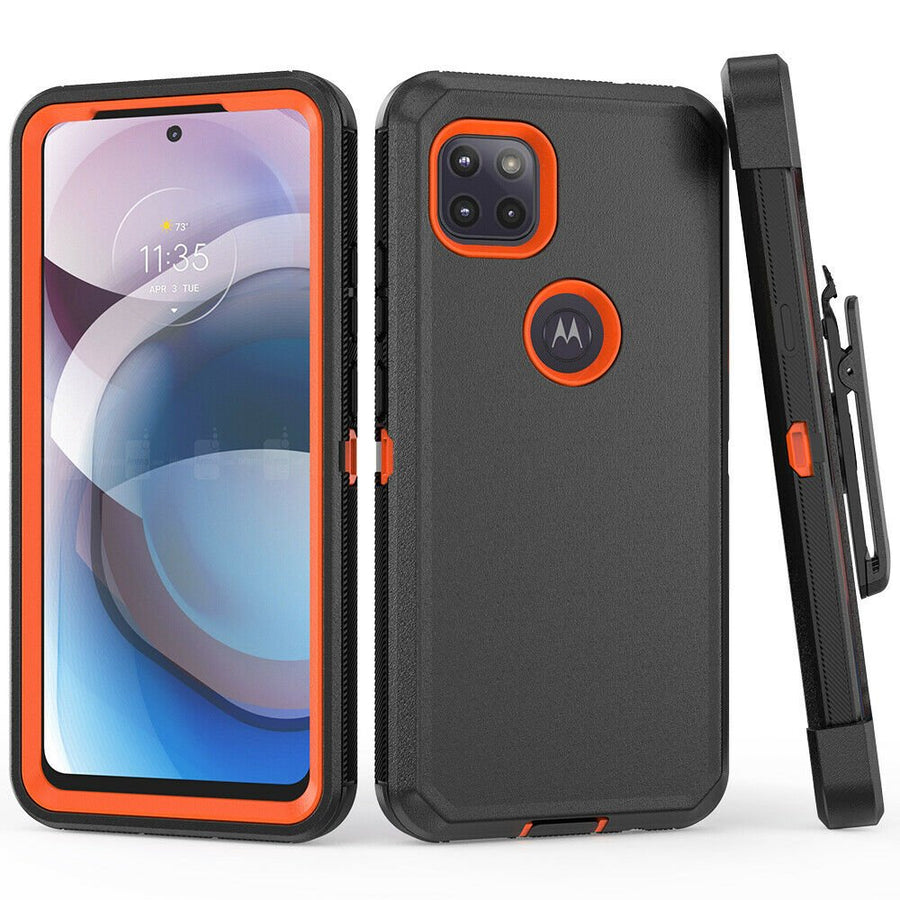 Heavy Duty Defender Moto One 5G Ace Case Belt Clip Holster - Black/Orange