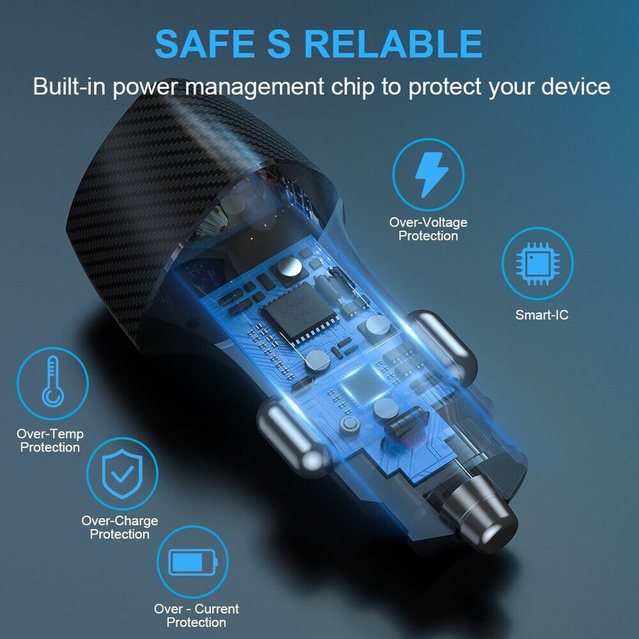 Fast Charging iPhone Car Charger with Type-C & Lightning Cable