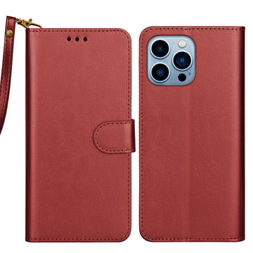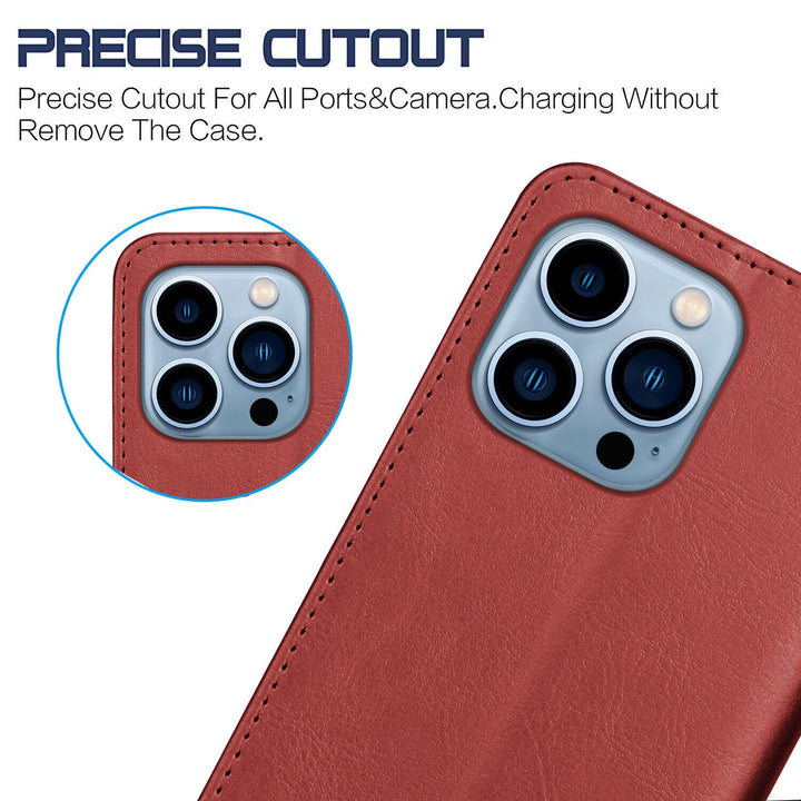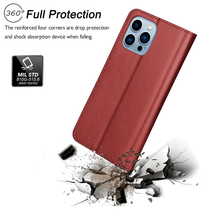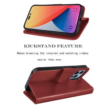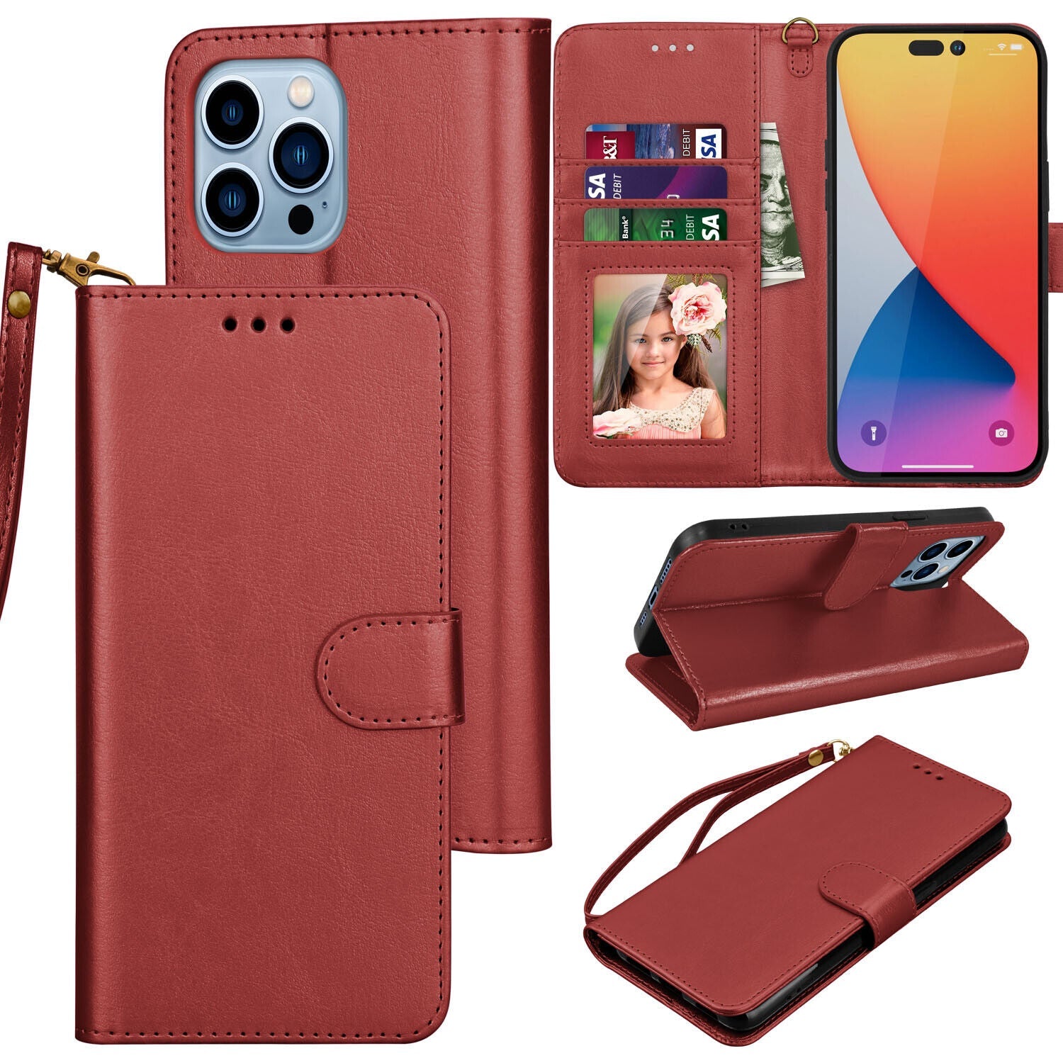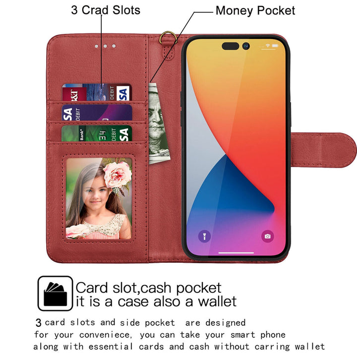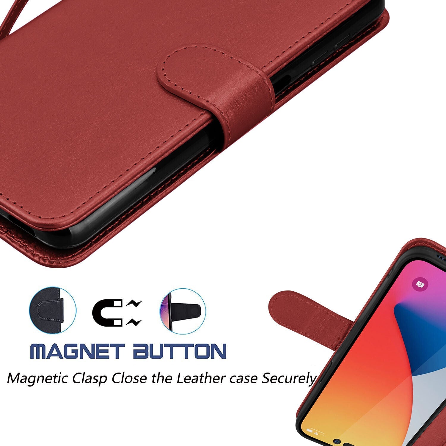 iPhone 14 Leather Wallet Case with Card Holder - Red