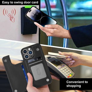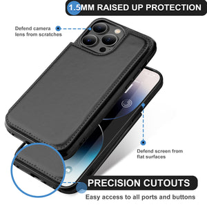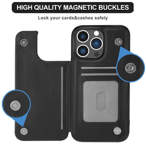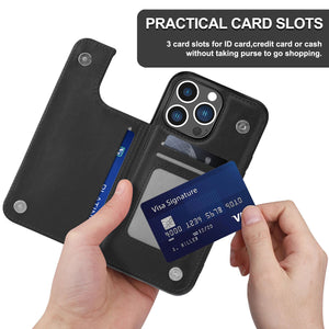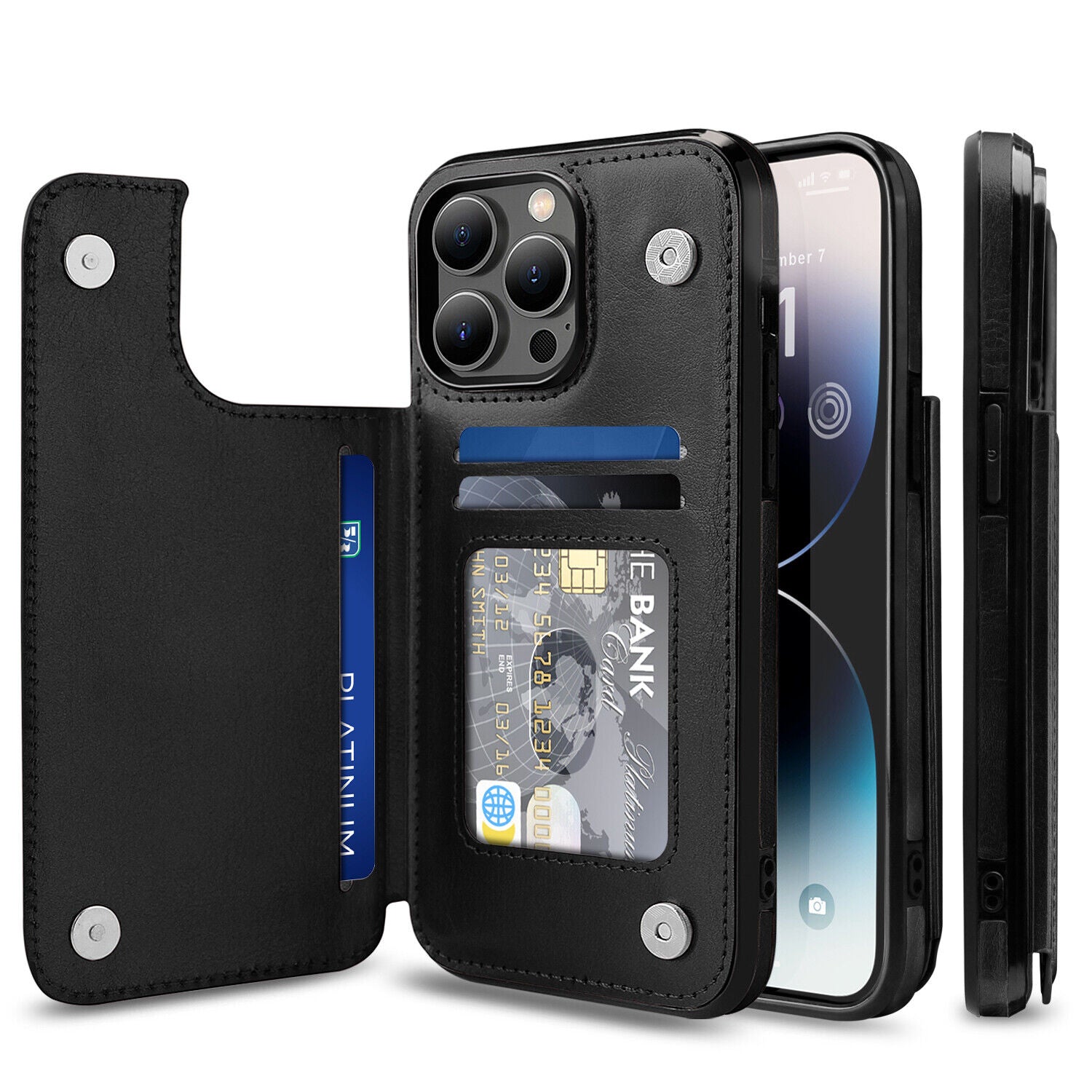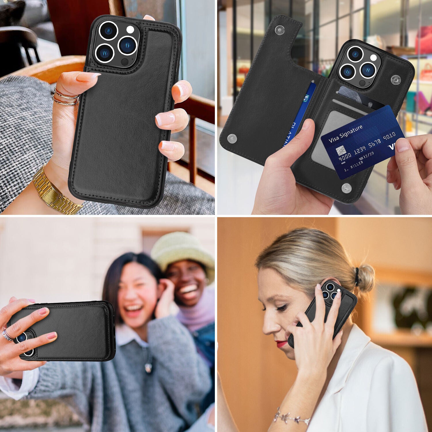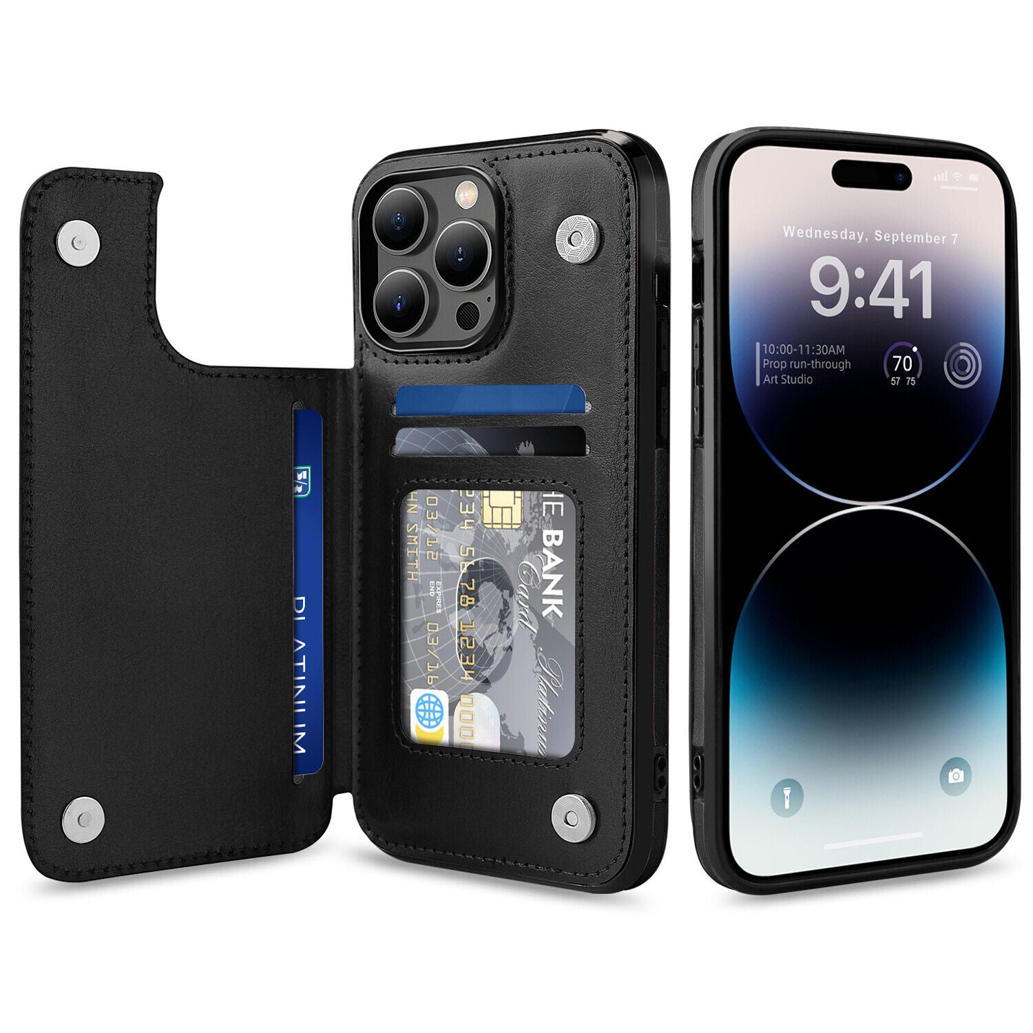 Slim Leather Wallet iPhone 14 Pro Max Case with Card Holder - Black